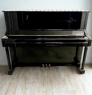 Finished in a beautiful high-gloss black, this piano offers a timeless and elegant appearance, complemented by tasteful brass fittings. It features a full 88-key keyboard, three pedals, a solid spruce soundboard, and a soft-close fallboard for added safety and refinement.